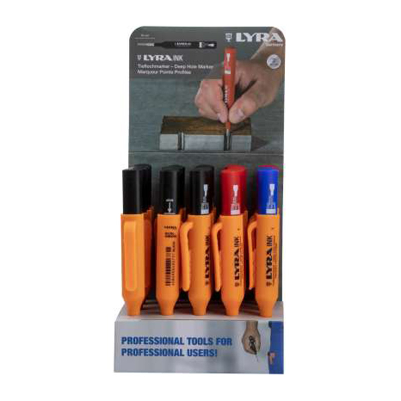 • Marcator pentru găuri adânci, cu vârf mai subţire, pentru zone greu accesibile.• În set: 12 x LY480099 - negru, 3 x LY480051 - albastru, 5 x LY480017 - roșu.