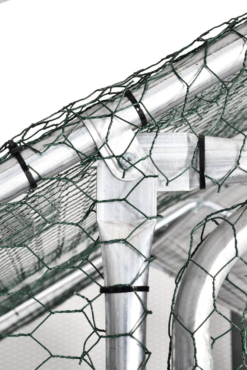 Cotet (tarc) pasari MF 3x2x2m G01 Este fabricat din otel galvanizat de inalta calitate, cu un acoperis din polietilena 140g/m2, rezistent la apa si raze UV, oferind protectie impotriva soarelui, ploii, zapezii si altor conditii meteorologice nefavorabile. Peretii laterali din sarma ai cotetului ajuta la prevenirea neplacerilor sau a accidentelor, permitand in acelasi timp circulatia aerului. Poarta este echipata cu un sistem de blocare, pentru a va mentine animalele in siguranta sporita. Produsul este usor de asamblat. Caracteristici: Dimensiuni 3x2x2m; Dimensiune usa 1.7x0.8m; Structura si plasa din otel galvanizat; Protectie soare si ploaie; Culoare argintiu; Usa cu zavor. Continut pachet: Cadru; Conectori metal; Acoperis; Plasa; Bride plastic.