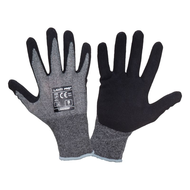 • Mănușile sunt realizate dintr-un amestec de fibre foarte subțiri, și rezistente la tăiere pentru asigurarea unui confort ridicat. Rezistență ridicată la taiere (nivel C) pe porțiunea palmei. Rezistență ridicată la abraziune (nivelul de rezistență 4). Înveliș de nitril pe porţiunea integrală a palmei asigurând o rezistență ridicată la grăsimi, uleiuri și lubrifianți. Elastice, se potrivesc perfect. Manșete elastice.