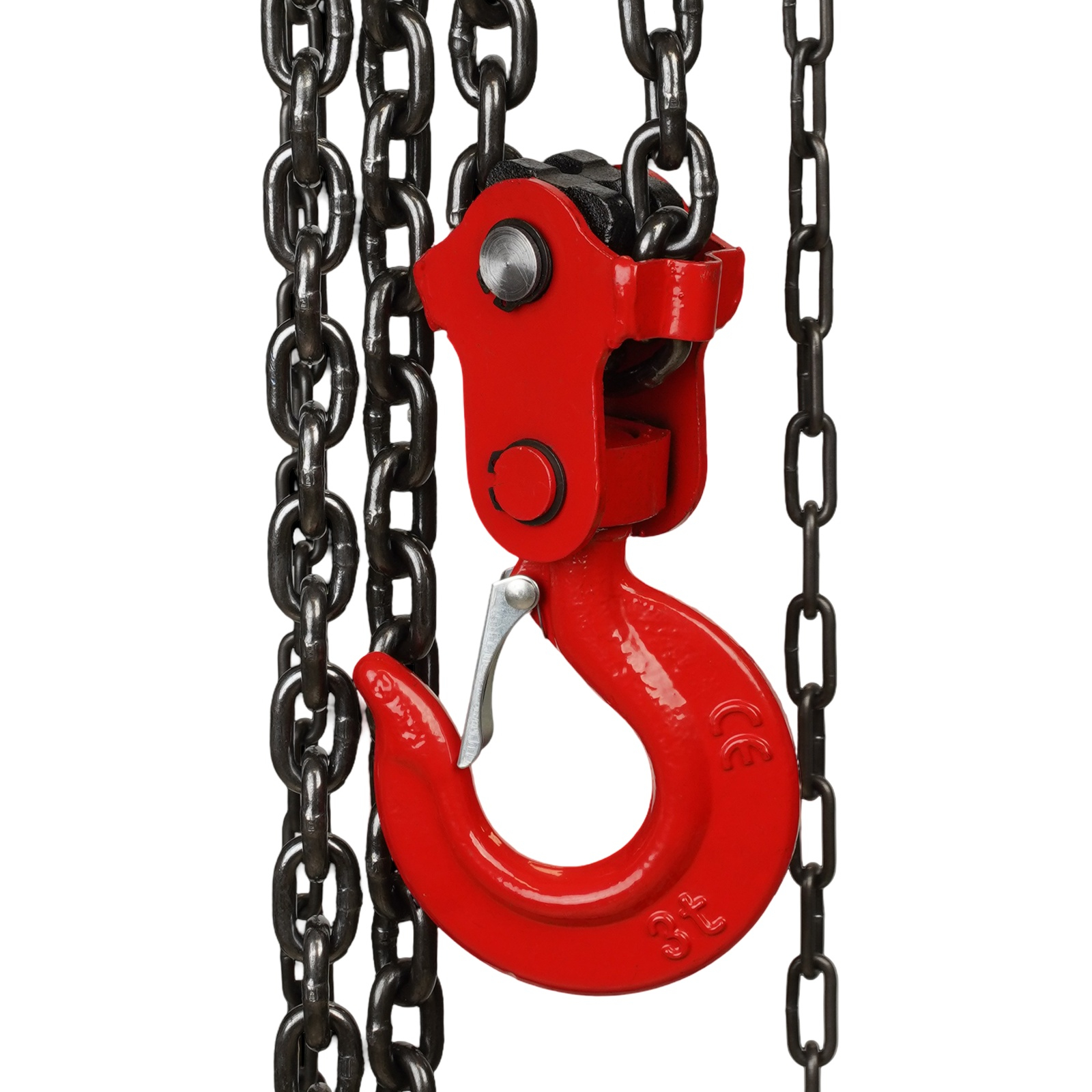 Lanțul de ridicare de calitate superioară, cu dimensiunea 8x24 mm și lungimea totală de 300 cm, este special tratat pentru rezistență crescută la tracțiune și coroziune. Cu ajutorul sistemului de angrenaje optimizat, sarcina este ridicată lent, constant și fără oscilații, ceea ce oferă un control excelent atunci când obiectele grele trebuie poziționate exact. Înălțimea de ridicare de 300 cm permite operarea macaralei într-o gamă largă de spații, iar înălțimea totală de 350 cm asigură un unghi de lucru optim.