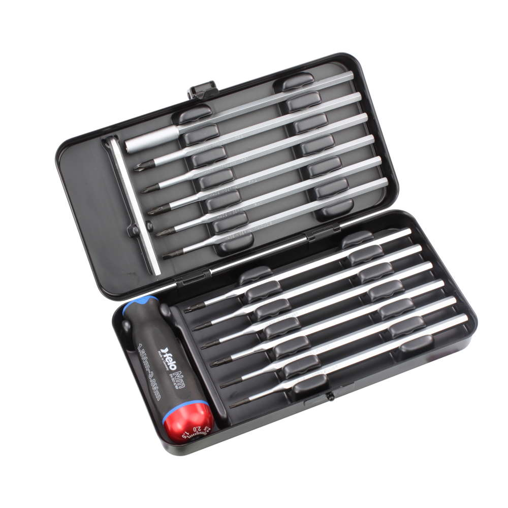 Surubelnitele cu reglaj de torsiune FELO Seria Nm pot fi achizitionate in sub forma de truse (cutie de metal, maner surubelnita dinamometrica plus 12 tije uzuale) sau individuale (manerul de surubelnita sau tije in functie de tipul aplicatiei) pentru a se potrivi exact aplicatiei dumneavoastra sau pentru a putea fi adaugate in truse sau gentile de scule.